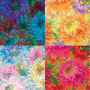 Philip Jacobs designs fabric as part of the Kaffe Fassett Collective and under his own label Snow Leopard Designs for the FreeSpirit brand. The Snow Leopard collections are inspired by “exotic cultures from distant mountains and valleys” and as well as his trademark classic florals, contain a more exotic element.