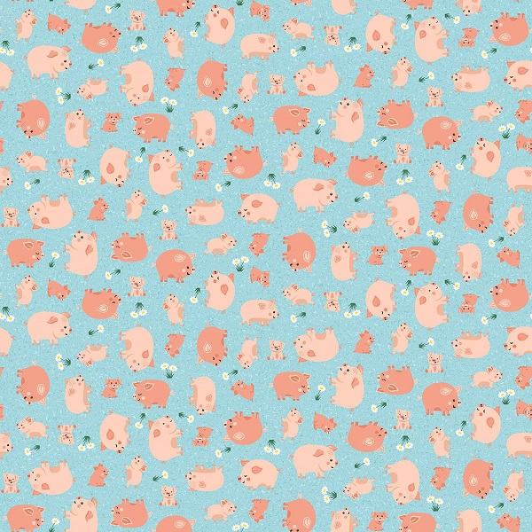 069_B Happy Pigs Blue, Fun on the Farm by Makower
