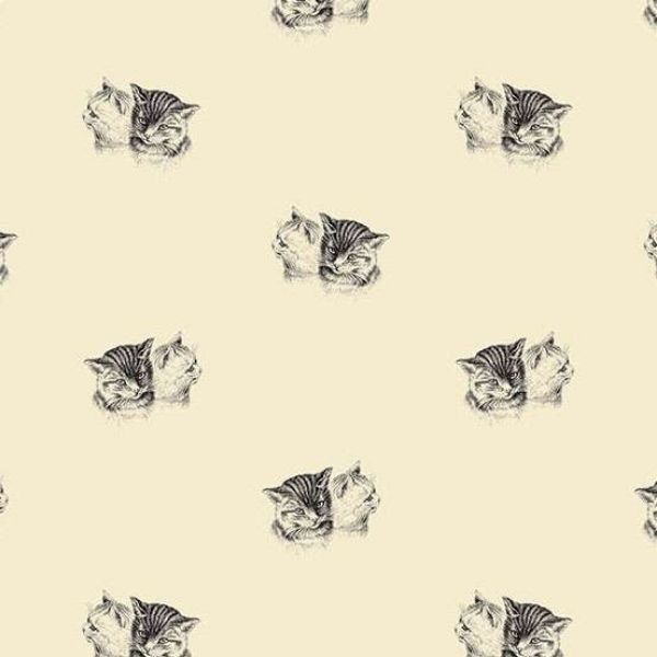 10104-K Louisa Black, Hazelmont Farm Shirtings by Max and Louise features a beautiful design of sketched cats on a cream background.