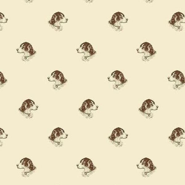 10106-N Roy Chocolate Hazelmont Farm Shirtings by Max and Louise features a lovely dog sketched in chocolate brown on a cream background.