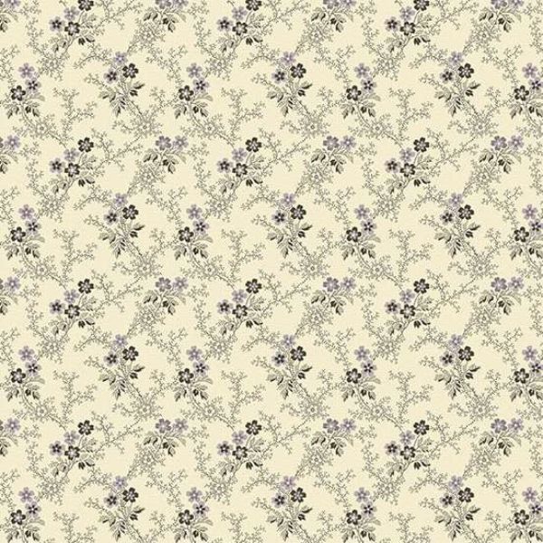 10109-LP Catherine Chocolate, Hazelmont Farm Shirtings by Max and Louise features a beautiful floral pattern on a cream background.