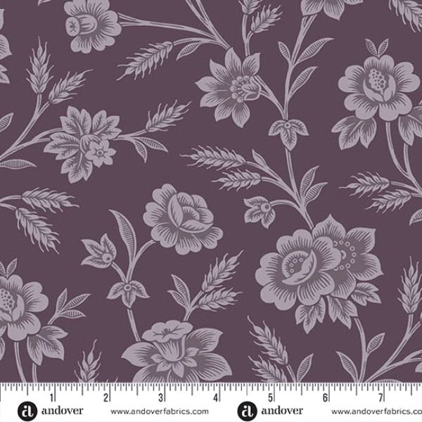 10172-P Purple Gathering: Autumn Bouquet: Renee Nanneman is featuring a muted purple background with softly detailed floral vines in lighter tones, this print offers a calm and classic look. It’s tone on tone design makes it ideal for quilt backgrounds, borders, or pairing with bolder florals for a balanced, nature inspired touch.