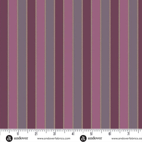 10175-P Purple Ribbon Weave: Autumn Bouquet: Renee Nanneman is featuring alternating stripes of different shapes of purple and soft gold, this refined print brings balance and structure to any project. The subtle woven texture adds depth and interest, making it perfect for borders, sashing, or pairing with florals for a classic, coordinated look.