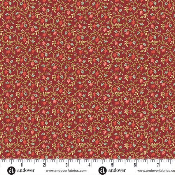 10176-R Red Twining: Autumn Bouquet: Renee Nanneman is featuring a warm red background with graceful winding vines and delicate leaves in lighter tones, this elegant print captures the essence of autumn charm. It’s soft, flowing design makes it perfect for quilt backgrounds, borders, or blending with florals for a timeless, nature inspired look.
