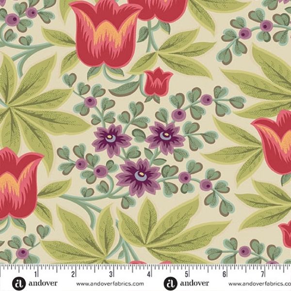 10374L Paradise Bone, Paradise by Renee Nanneman features a beautiful design featuring red tulips and purple flowers on a light background.