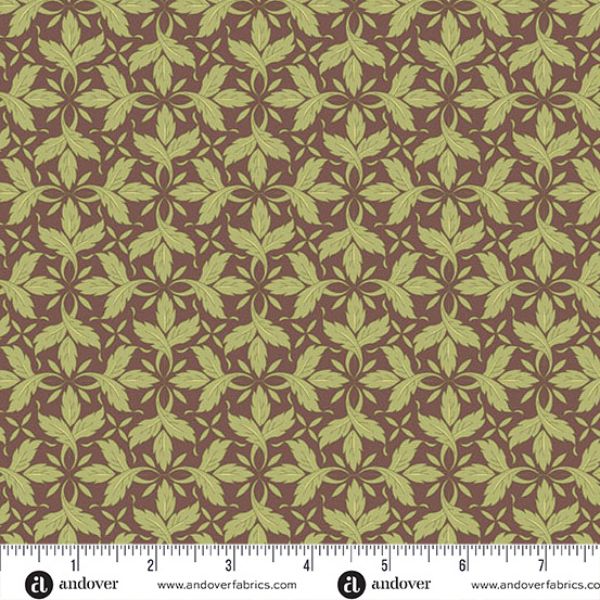 10377N Tiki Coffee Bean, Paradise by Renee Nanneman features a beautiful print of intertwining green leaves on a brown background.