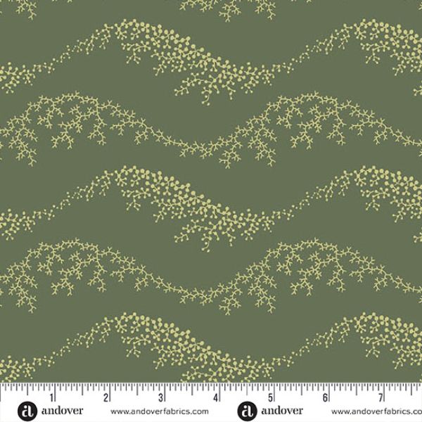 10380G Wave Jungle, Paradise by Renee Nanneman features a branch-like pattern in the shape of waves on a soft green background.