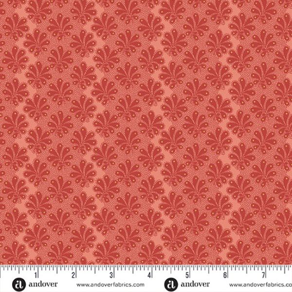 10381O Seaspray Flame, Paradise by Renee Nanneman features a repeating motif imitating seaspray on a red dotted background.