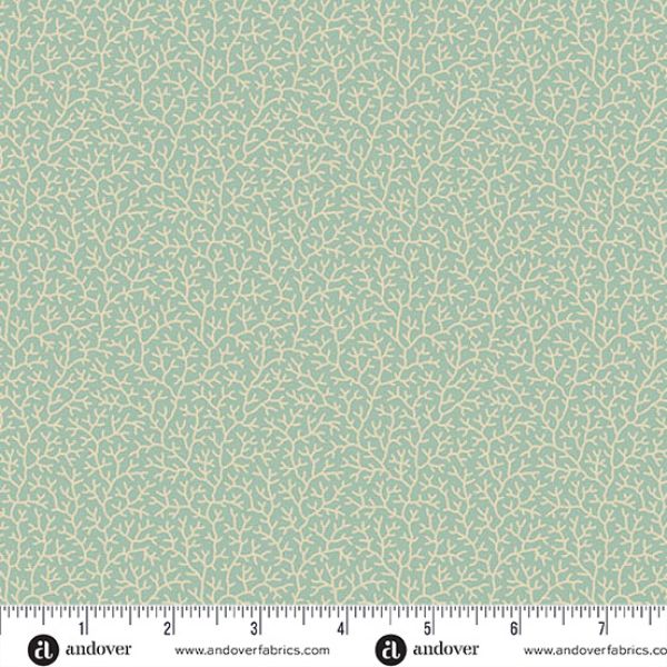 10383T Branch Coral Gulf Stream, Paradise by Renee Nanneman features a design of light coral branches on a vibrant teal background.