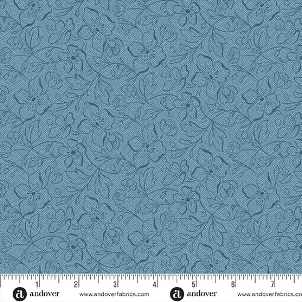 10473-B Garden Path Slate, Special Delivery by Edyta Sitar is an intricate tonal pattern of flowers and leaves on an indigo subtly checked background.