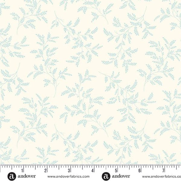 10484-L Tree Fern Cornflower, Special Delivery by Edyta Sitar is a beautiful print of soft blue fern leaves on a cream background.