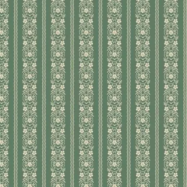 Garland Spruce features cream flowers in a stripe pattern, on a green background.