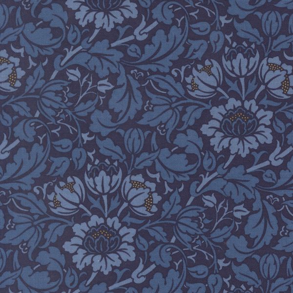 13384 14 Flowering Scroll Florals Twilight, Morris Muse by Barbara Brackman features a gorgeous pattern of flowers on a dark blue background.