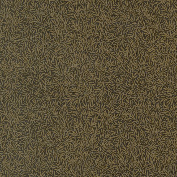 13387 15 Willow Blenders Leaf Ebony, Morris Muse by Barbara Brackman features an intricate pattern of leaves on a dark background, perfect to use as a blender in a quilted project.