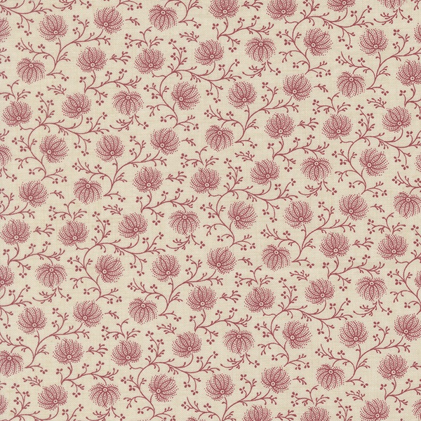 13986 11 Campanule Pearl, Joie De Vivre by French General is a design of little red bellflowers on a cream background.