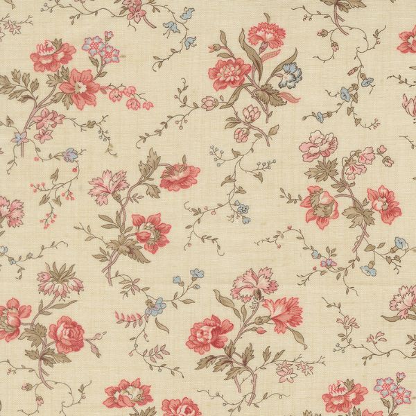 13991 11 Parterre Florals Pearl, Fleur de Paris by French General is a design of beautiful pink and blue flowers on a cream background