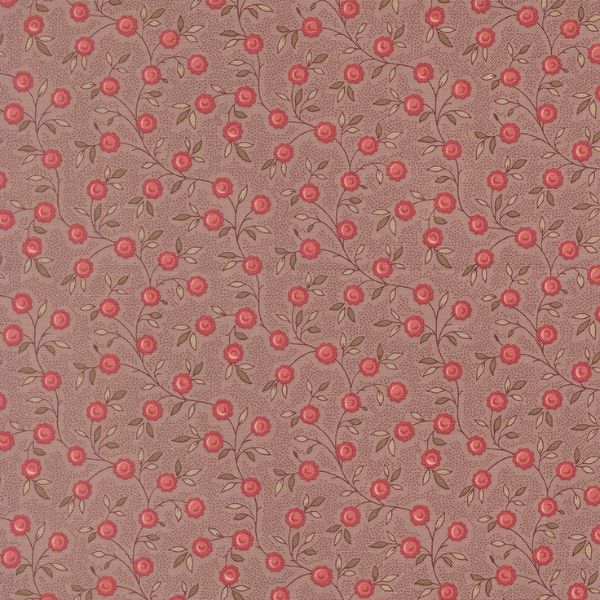 13995 17 Topiare Florals Vines Lavender, Fleur de Paris by French General features an intricate pattern of red flowers on a lavender background.