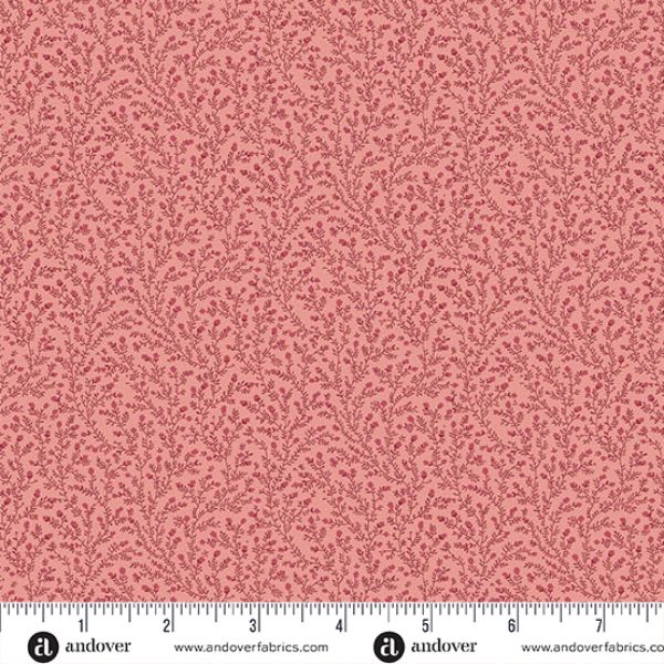 1596-R Carnation Heather: Wildflower Cottage: Renee Nanneman is featuring a red background scattered with delicate heather sprigs in darker red this fabric exudes a timeless, cottage garden charm. The fine, trailing floral design creates a gentle, all over texture, making it perfect for quilt backgrounds, borders, or vintage-inspired home décor.