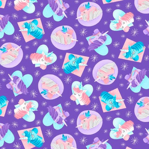 1859-52 Unicorn Faces Purple is from the Sparkle Like a Unicorn collection. This fabric is 100% quilting cotton. Ideal for your next patchwork and quilting project.