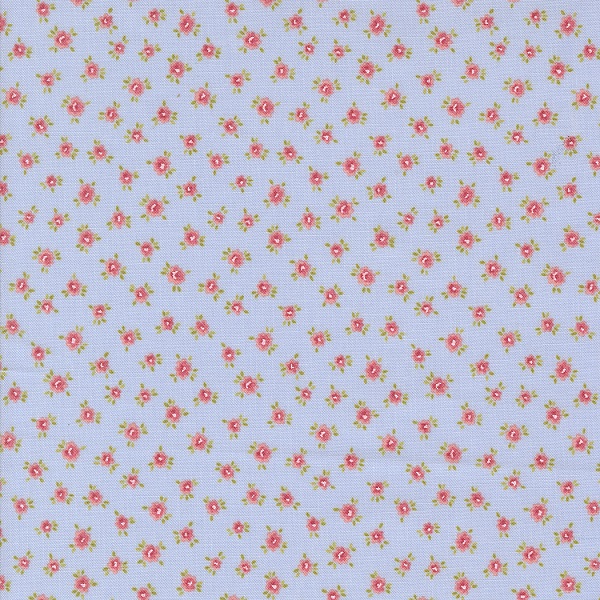 18783 16 Little Posies Sky, Memory Lane by Brenda Riddle Designs is a design of dainty little pink flowers on a sky blue background.