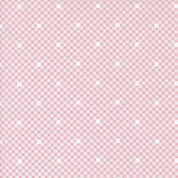 18784 22 Gingham and Dots Petal, Memory Lane by Brenda Riddle Designs is a pink gingham design with white dots.