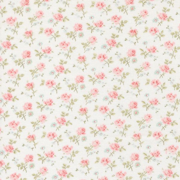 18791 11 Field Floral Small Florals White, Abide by Brenda Riddle Designs features beautiful delicate pink flowers on a white background.