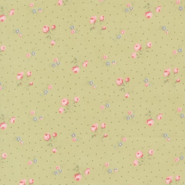 18792 15 Small Floral Dots Light Green, Abide by Brenda Riddle Designs features beautiful delicate pink flowers and dots on a light green background.