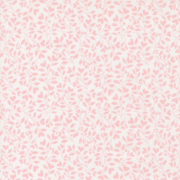 18794 11 Hearts and Leaves Blenders White Abide by Brenda Riddle Designs features an intricate pattern of pink flowers on a white background.