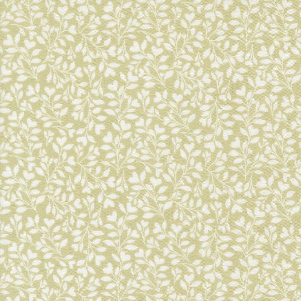 18794 15 Hearts and Leaves Blenders Light Green, Abide by Brenda Riddle Designs features an intricate pattern of white flowers on a green background.