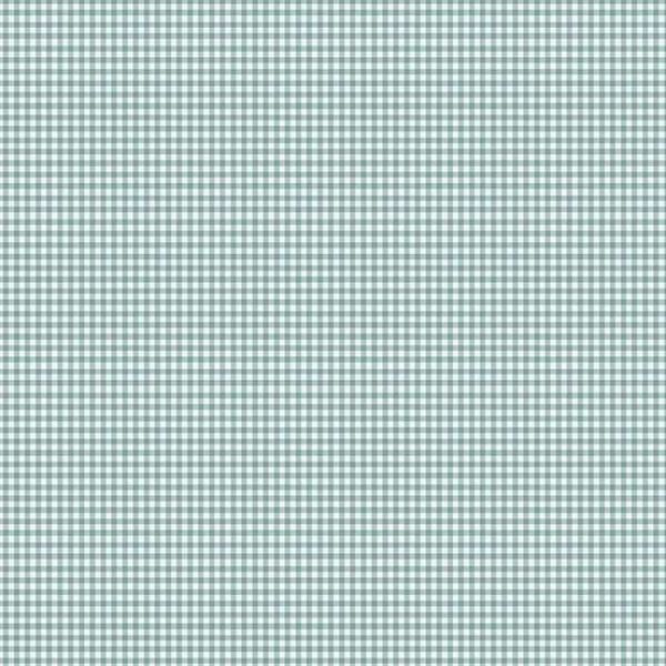 188_T Gingham Teal, Little Ones by Makower is a gingham print of teal stripes on a white background.