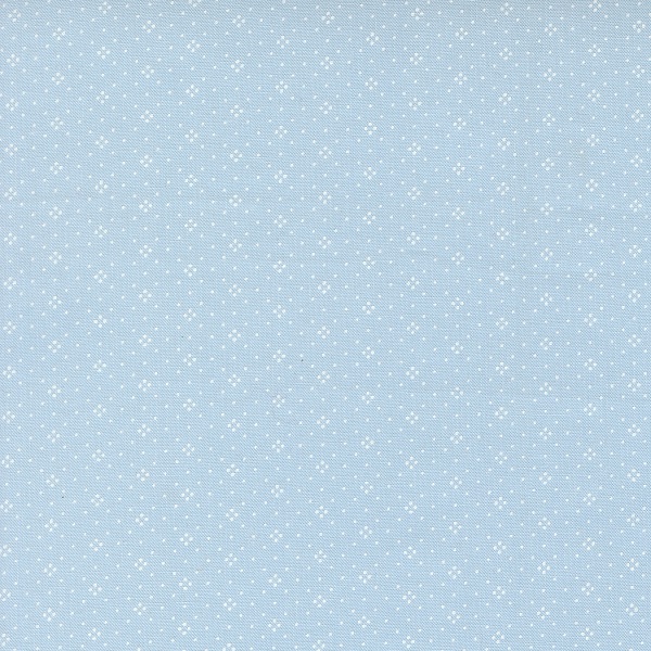 20488 126 Eyelet Forget Me Not, Rosie by Fig Tree & Co is a design of little white dots with diamond patterns on a blue background.