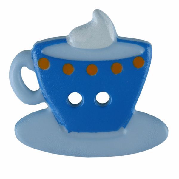 20mm Blue Mug Button 2-Hole (311077). These fun buttons are in the shape of a mug topped with cream.
