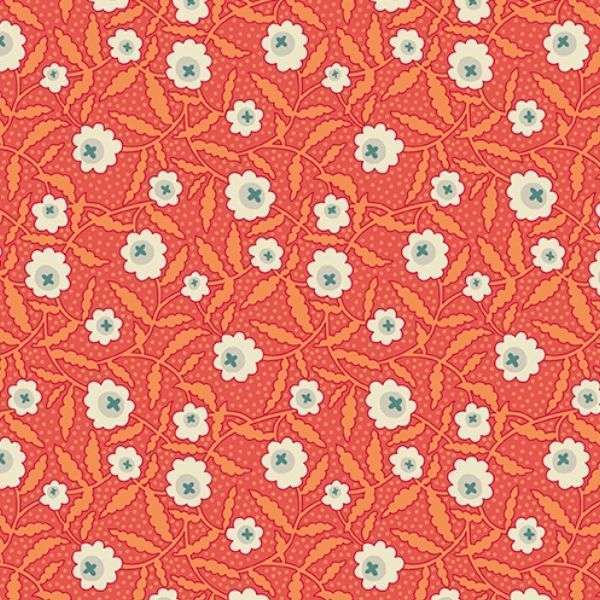 This is a beautiful modern floral collection. Enjoy pretty flowers and ditsy prints in a fresh Spring palette of teals, olive greens, coral pinks and mustards. These fabrics combine beautifully together! Grow a garden in any season with these fabrics.