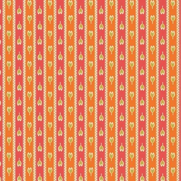 21019-O Trailing Petals Tangerine is a fun strip design, alternating in lighter and darker stripes. Ideal for patchwork and quilting projects.