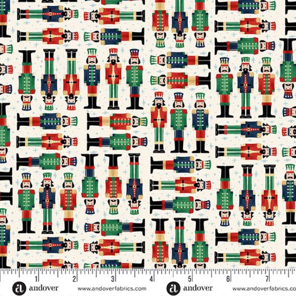 224-Q Soldiers Cream, The Nutcracker by Makower is a fun print of nutcrackers in a row on a cream background.