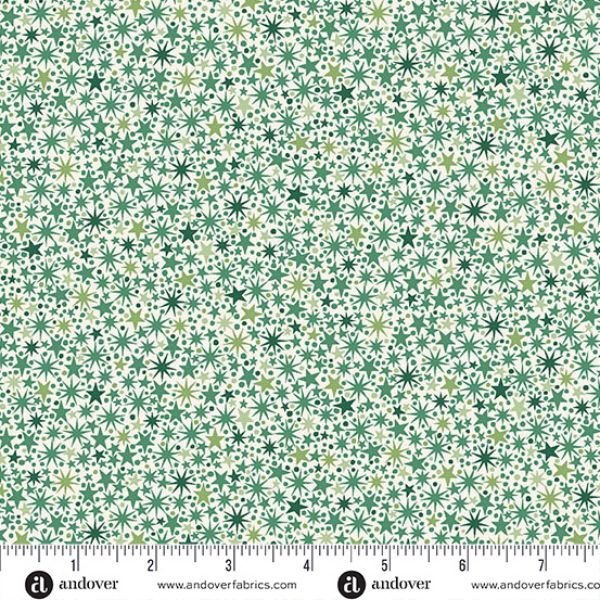 225-QG Twinkle Cream and Green, The Nutcracker by Makower is a beautiful print of different shades of green stars on a cream background.