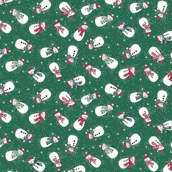 232-G Snowmen Green, Country Christmas by Makower is a fun print of snowmen and stars on a dark green background.