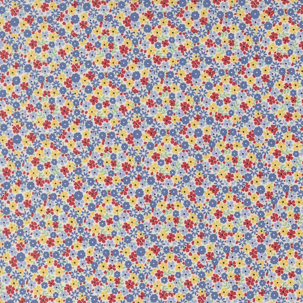 23374 11 Cute Calico Primary, 30’s Playtime by Linzee Kull McCray is a design of little bright flowers on a cream background.