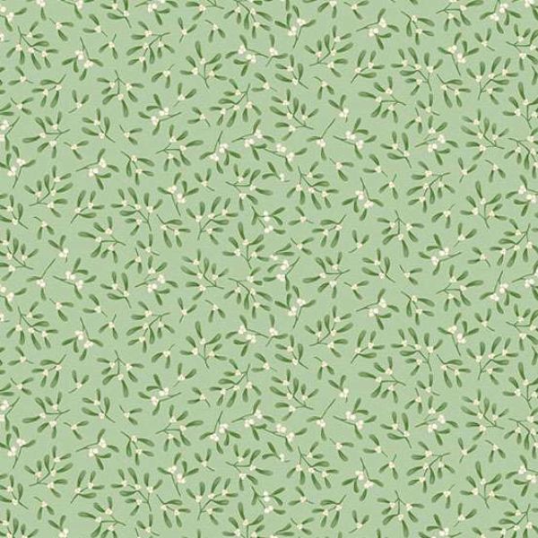 235-G Mistletoe Green, Country Christmas by Makower is a beautiful pattern of mistletoe branches on a soft green background.