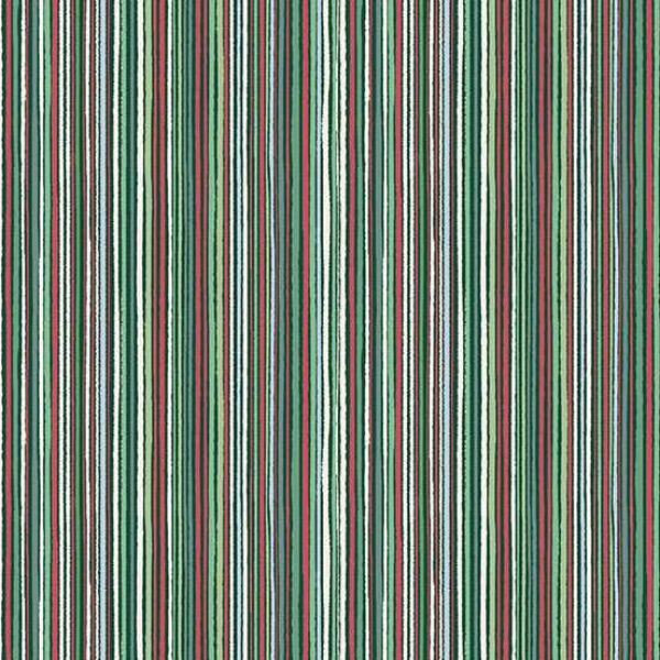 237-G Fine Stripe Green, Country Christmas by Makower is a pattern of fine vertical stripes of green, red, blue, and white.