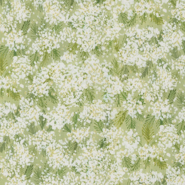 24642 12 Queen Anne Bud, Sweet Cecily by Janet Clare is a design of bunches of cream flowers on a green background.