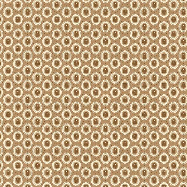 2694 N Cabuchon in Walnut, Sienna by Max & Louise. This fabric features an oval design, all over. This fabric is from a new collection of vintage floral prints in soft mints, mauve, pink and blues.