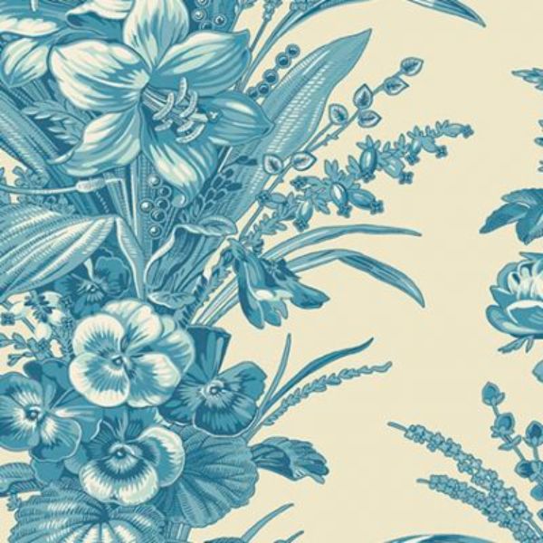 2725.LB Amaryllis Bleu, Cocoa Blue Collection. This collection features classic floral and ditsy designs in soft blues and cool neutrals.