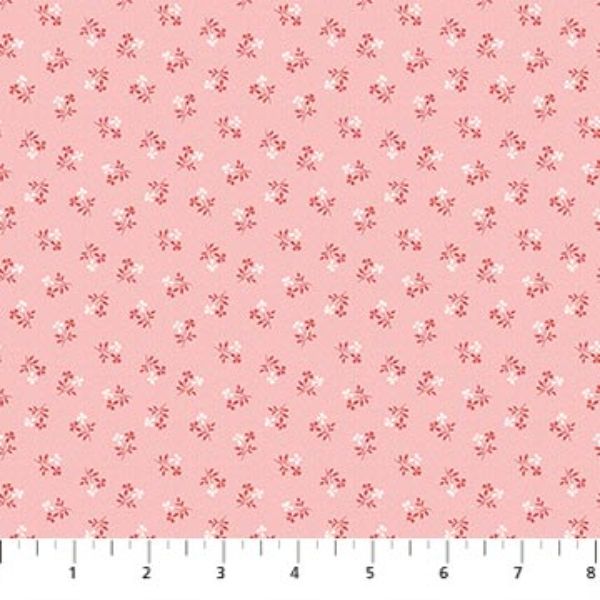 29138 21 Bordeaux by Deborah Edwards features tiny bundles of pink and white flowers dotted on a soft pink background.