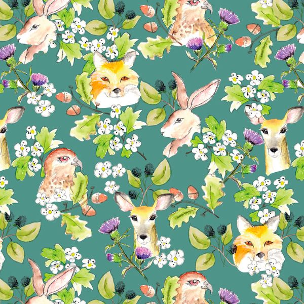 2967-06 Animals of the Woods is a beautiful fabric from A Country Walk collection. It features adorable illustrations of rabbit, birds, and deers.