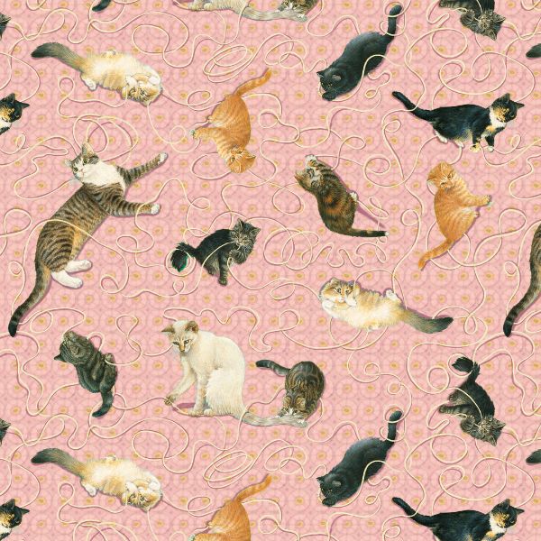 2979.22 Cats Playing with Yarn Pink, Sophisti-Cats by Lesley Anne Ivory. This is a new 10-piece collection for Blank Quilting Co. Inspired by William Morris and the Arts and Crafts movement.
