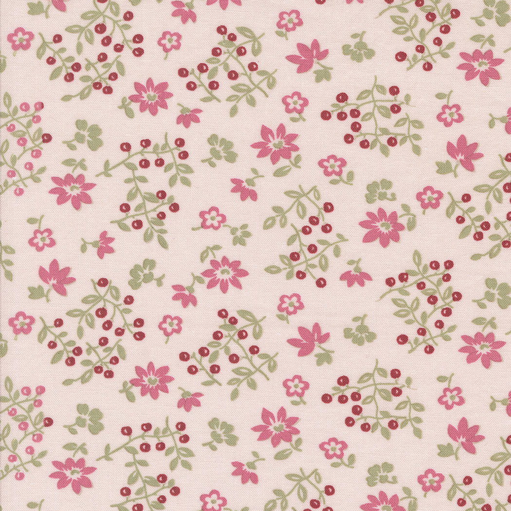 3061 12 Blush, A Very Sweet Christmas by Bunny Hill Designs is a design of small pink flowers and berries on a blush pink background.