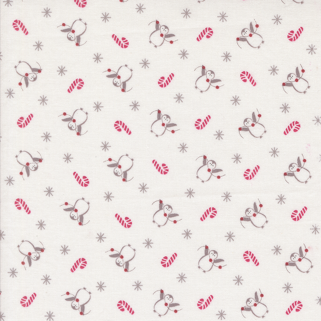 3062 11 Snow, A Very Sweet Christmas by Bunny Hill Designs is a festive design of penguins and candy canes on a cream background.