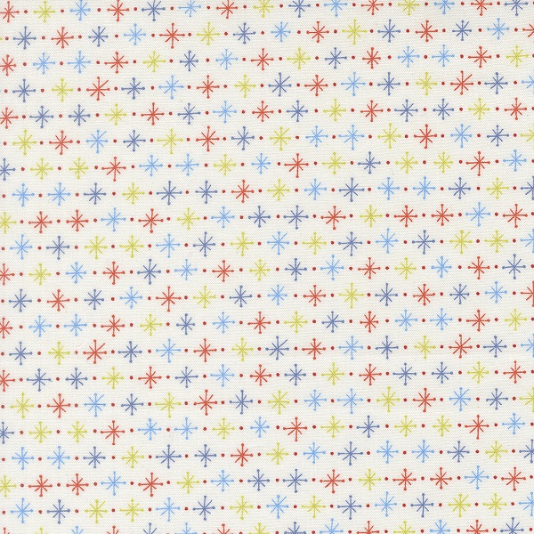 35422 11 Twinkling Star Whipped Cream, Rosie by Fig Tree & Co is a design of little twinkling stars made of colourful lines on a cream background.