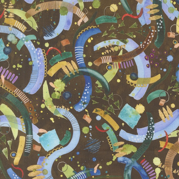 39842 13 Earth, Wanderlust by Create Joy Project is a colourful design of watercolour shapes on a brown background.